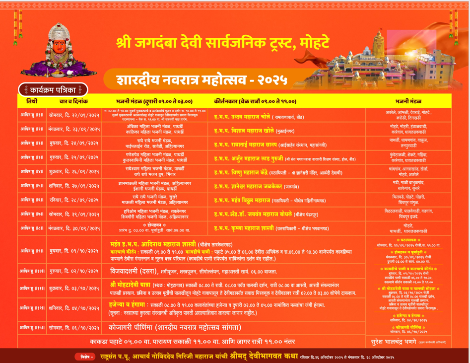 नित्य धार्मिक पूजा विधी व आरती कार्यक्रम वेळापत्रक